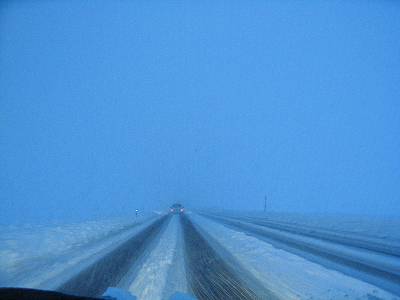 そうそう、昨夜は猛スピードで追い抜いてゆくトラックたちに悩まされたんですが、ちょうど夜明けすぎ、そのうちの一台が反対向けにこちらを向いて高速道路上に止まっていました。目立つマークだったんでよく覚えているんですが、おおかたスリップしたんでしょう。すでに警察も来て処理をしていたので安全に通れましたが、目の前でスリップされたらたまったもんじゃないです。この旅では、同じようにスリップしている車をそれこそ何台も見ることになりました。地元ナンバーの車も多かったです。なるほど雪道の運転は気をつけなくちゃと思い知りました。油断大敵ということばを肝に銘じたわけです。