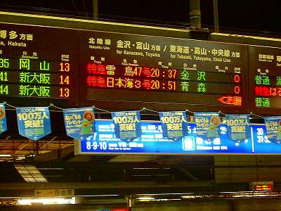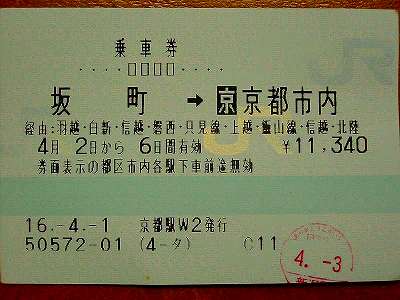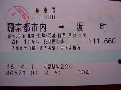 でも、ちょっと申し訳ない気分。だって発券するのがめんどうですから。いくらさばいてもさばいても後から後から切符を求める客が続く窓口で、ただでさえ顔がこわばっている係員に、あらかじめパソコンで印刷してあった湖西線、金沢、余目、新庄、米沢経由坂町まで、そして坂町から新潟、会津若松、小出、飯山、直江津経由の京都ゆき、また一筆書きのルートからはずれるため、余目から酒田まで往復、という3枚の切符のために記した経路を、ためらいがちにさしだす私。表を一目みた係員氏、ずらりと並んだ見慣れぬ駅名に、今度はまたやっかいな相談がきちゃったよ、とばかりますますこわばった顔も、一筆書きの切符だと分かるがはやいか、恐ろしい早さで画面上に指を走らせながら、ながながしい(彼にとっては「まがまがしい」?)経路の乗車券を作っていきます。さすがはプロ。感心感心。係員氏の華麗な指さばきに見取れているうちに3枚の切符が機械からにょーっと出てきました。