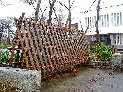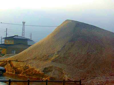 豪商本間家の住宅も見ました。部屋が20を越えていたのではないでしょうか、案内人の説明によると、欄間が飛騨高山の春慶塗りで、高山からわざわざ職人をよびよせて作らせたのだそうな。欄間も部屋によって、杵のかたちをしたものや、名前は忘れましたが、格子のようになったものなど、いろいろな趣向をこらしてあります。木は桧の、しかも節のないところだけを選んで作られてます。天井板もそう。とてつもないぜいたくな作りになっていました。飛騨高山といえば、ここ酒田から脈絡のない町に見えますが、日本海を物流のルートと考えると、なるほどつながります。そういうことなんですね。