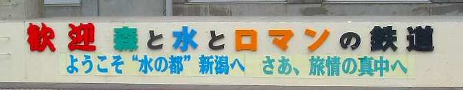 いろいろ興味を引く目新しい物は車窓に登場しますが、でも今日はなんだかさえないんですよ。実は持病とも言える頭痛が新潟につくあたりから、どんどんひどくなってきているんです。シートに座って、過ぎゆくのどかな景色を眺めるともなくながめ、じっと我慢し続けます。昨日山形で仕入れた地酒を調子に乗って飲み過ぎたのがいけなかった。二日酔いではないんですが、ときどきお酒が引き金になってひどい目にあいます。