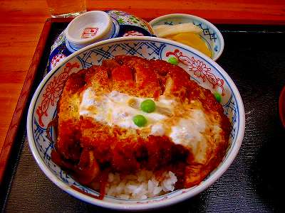 降水確率0パーセントにもかかわらず、ぱらぱら降り続ける雨にさらされながら見つけた「なかじま」。難の変哲もない洋食屋ですが、頼んだ煮込みソースカツ丼はおそろしくうまい。トンカツを、ソースをベースにしただしで煮て、卵をからめてあるんです。ソースのとんがったところがうまくまるめてあってほんとうによいものでしたよ。満足満足。