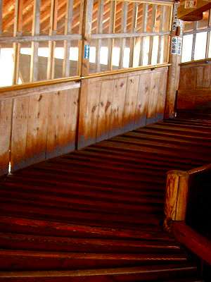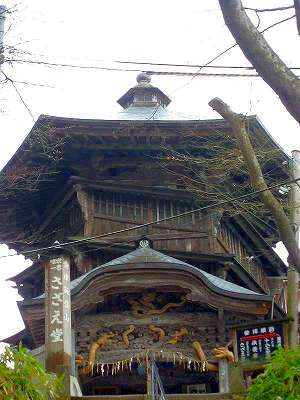 途中にあった、「さざえ堂」という不思議な作りのお堂にも入ってみました。入り口から入り、ひずんだ五重の塔みたいな建物の中をぐるぐると、うすぐらい木造の廊下をぎしぎしと昇っていきますと、何週か回って頂上に出る。で、廊下はそこから下っていき、いつの間にか出口へといざなわれます。何か変だ。そう、行きと帰りの道は一本で、昇ってくる人と下ってくる人は出会わない構造になっているんですよ。たしかにさざえの形に似ていなくはないかな。ほら。