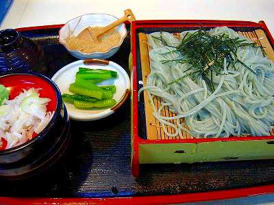 バスは8時20分。まだ一時間ちょっとあります。朝食といたしましょう。駅のすぐ横に「名物なっとううどん」と書いてある小さなうどんやがあります。今日の朝食はここで。名物なんだからと、納豆そばを頼みます。少し甘めのだしで東京のものみたいに塩辛くはありません。面白いのは、納豆を掬うためラーメンと一緒に出てくるような木のお玉がついてきて、そのお玉に穴が開けてあること。ほかの客にはお玉自体が付いていなかったので、納豆のためのものだとみえます。麺ががゆるゆるでこしが全然なかったことが残念。