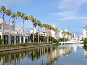 伊予電鉄に乗って、道後温泉を目指します。「道後温泉本館」は明治時代に建てられたというどっしりとした構えの建物で、サービスによって料金が違っています。休む部屋が着くとか、それプラスお菓子とか・・・。私は何もなしの風呂にはいるだけを選びます。300円。これは安い。中に入ると、昔の銭湯のような脱衣場。でもとても広い。風呂場は西と東と2ヶ所に分かれていて、扉を開けると目の前に広い湯船。そしてその湯船の真ん中に、大きな樽のような形をした石造りの円柱が立っていて、そのなかほどから何カ所か突き出した樋から、湯船に透明な湯が絶え間なく流れ落ちています。湯船は何十人かがゆったり入れる大きなもので、何人か同時に入ると湯船の縁からざあっと湯が流れ出します。しかしすぐにもとの高さに戻ります。湯の量がとても豊富。昼に汗でべちゃべちゃになって気持ちが悪かったのが、このお湯ですっきり、さらさらになりました。脱衣所では昔ながらの、天井から下がっている大羽の扇風機が何台かゆっくりと回っています。冷房はなし。窓が開いていて外の音がみんな聞こえてきます。古びて濃い茶色になった柱や板壁がなつかしい雰囲気をかもしだしてます。湯上がりに汗くさいシャツを着るのが気持ち悪いので、洗って持ってきていた仕事用のシャツを着ようとします。しかしなんということ。肌着を忘れてました。しかたなく直にワイシャツを着て、電車で警察署前に向かいます。ありゃりゃ服を着たとたんにもう汗が噴き出してきます。