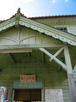 私はその次の、新八日市で降ります。この駅舎がいい雰囲気だと聞いていたからです。うん、これこれ。これぞ駅だというにおいがぷんぷんします。ボランティアの人でしょうか、駅の掃除をしています。古いんだけれど、とてもきれいに保たれています。帰りに彦根の「まちなか博物館」でもらったパンフレットを読んで分かったんですが、近江八幡から八日市までの路線は、もともと近江鉄道とは別会社、ライバル会社の八日市鉄道だったようです。それで、近江八幡からの電車はここが終点。そしてこの駅舎が本社の社屋だったとか。ただ、戦時中に国策で合併させられ、この駅から近江鉄道の八日市駅まで線路が延びると、この駅はさびれてしまったということです。