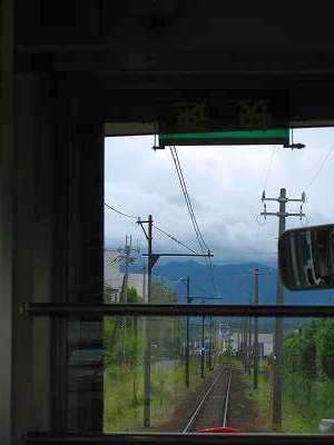 少し走るともう町中を抜けて、田園風景にかわります。次の駅で登山客風の団体さんがどっと降りてしまうと、閑散とした車内、やけに大きな蜂が車内を我が物顔で飛び回ってます。いやな予感がしたとおもったらやっぱりこっちにふらふら飛んできます。おいおい、手で払って逆に攻撃されてもいやだし、中腰でそろそろ席を移動。なんだか情けない格好ですが蜂が相手じゃあ仕方がありません。あっちこっちと移動するとそのうち蜂も追ってこなくなってほっ。