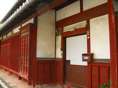 街道筋の店。 右 まだ青い花梨と土壁の家。