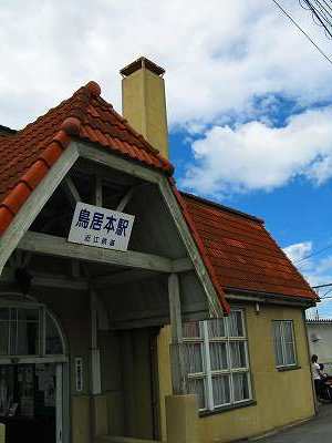 次に降りたのは、彦根の次鳥居本。ここも昭和6年に建ったときと同じ姿の駅舎が見られます。抜けるような秋の空に、煙突がとても調和していると思うのは私だけでしょうか。