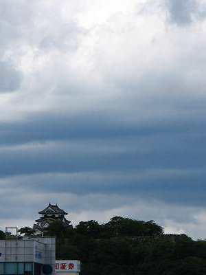 駅から見える彦根城。 右 彦根の有名キャラクター「ひこにゃん」