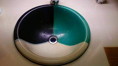 この車両、デッキへのドアは因州和紙を挟み込んでおり、手洗いシンクは民藝で有名な中井窯。地元の手仕事をさりげなく使うあたり、センスが光りますね。