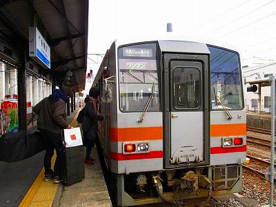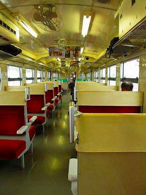 翻ってこちら、その地域のリズムがのんびり流れているローカル列車は、自分も列車と一緒に動いているということをちゃんと実感させてくれます。忙しい日常生活では、仕事が主。自分は仕事のリズムに乗せられて、毎日仕事の目的に向かって運ばれている。「ねばならない」に満ち溢れた日々。少なくともこの普通列車のなかで、特に目的もなく目に映る風景を愛でているこの瞬間、「ねばならない」から解放されます。特に、だんだん数を減らしているこのボックス席は、開放感も特急とは全然違うもの。特急だと皆同じ方向を向いて座っているからみんな同じ方向を向いてます。隣の人でさえどんな顔か分からないまま。かたやこちらは、あっちにひとかたまり、こっちにひとかたまりと、若い学生から年寄りまで、顔を見合わせて普段着の世間話に花が咲きます。このリズムと開放感。いっぱい特急に乗って、逆に感じたローカル線の素晴らしさ。