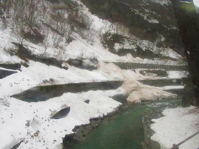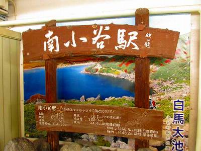 ひとかたまりの集落と旅館街が見えたところが平岩。昔は東京から直通列車もあり、温泉の客でにぎわったと聞きますが、本日は誰も乗らないし誰も降りない。このさきはもう、人家を見るのもまれ。巨人が大きな手で土や岩をぐっちゃり固めたような岩肌の、ほんの少しだけ空いたところを、あるいは空いてないところは人間が必死で開けて、その中をのろのろ進んでいく、この景色はここ大糸線ならではのもの。この風景の前にいつの間にか心は静まり返ります。約一時間ほどで終点南小谷。ここはJR西日本と東日本の境界。ほとんどの人はここでJR東日本の電車に乗り換え、白馬、松本方面へ抜けますが、今回はJR西日本の領域だけの「おとなびパス」の旅。すぐに同じ列車でとんぼ返り。松本方面からやってきたのであろう、中国人の家族連れも乗ってきます。昨日のスーパーまつかぜの車内でもそうでしたが、あちこちのローカル線で中国(台湾かも)からの個人旅行の人たちとよく会うようになりました。団体のお仕着せではなく、自分の行きたいところを、自分で調べて旅する。やっぱり旅はこうでなくちゃ。