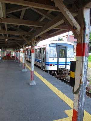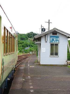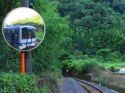 いやあ、風がなければ、決して降り立つことなどなかった駅のホームで深呼吸。あと一人の乗客も同じようにホームで一服。山里の小さな無人駅。時折ひょうっと強い風が吹き抜けて、田んぼの緑をざわざわ揺らします。乗っているだけでは味わうことのない、濃密なひと時でした。