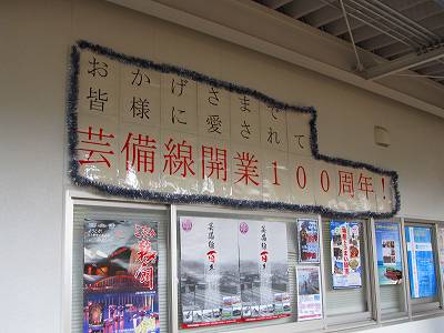 十分ほどで風は収まったらしく、出発。ただ、風が強まると断続的に止まるおそれがあるというアナウンス。山が迫って、木の枝が列車にあたり、バリバリという音を立てます。途中で乗ってきた5,6人の乗客は、江津から40分ほどの石見川本駅で全員降車。ローカル線は、沿線の学生の通学に利用されていることが多く、通学時間帯は学生でいっぱいになるところが多いのですが、全線にわたって学生を三人ほどしか見かけないのは、よそごとながら気になってしまう。三次と江津のほぼ中間、浜原駅から口羽までの間は、昭和の50年になってやっと開通した区間なので、スピードが上がり、日本で一番高いところにあるホームとして有名な宇都井を通過。広島県に近づくとお年寄りがどんどん乗ってきて、ようやく賑やかに。そのなかで、ひときわ大きな声で話すおじいさんの広島弁が、さっぱりわかりません。いつのまにか遅れを取り戻し、定刻9:21分三次到着。これだけ線路も空いているし、川沿いで景色も悪くはないのだから、とびきりの料理を食べさせる観光列車とか、大自然の中を走る三江線で結婚式、なんて趣向のおしゃれ列車を広島から運転すれば、宣伝次第で客はあつまるのではと、素人ながら考えてしまいました。このまま寂れさせておくにはもったいない資源だと思うんですが。