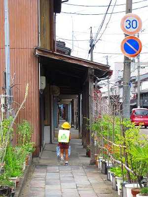 残っている雁木を足すと、16キロメートルにもなる、と聞いてさもありなんと思います。右から読む古い看板がひょいとかかっていたり、古くからの石畳が現役で残っていたり、色んな種類の緑を丹精して育てていたり、いちいち「ほう」、と感心しながら歩いているともう時間。これはまたゆっくり来ないといけません。そんな雁木を学校帰りの小学生が歩いていたりすると、この子たちにとってこの雁木はあたりまえの風景なんだろうな、と想像されます。外に出てみて素晴らしい宝物なのだと気づくのでしょう。