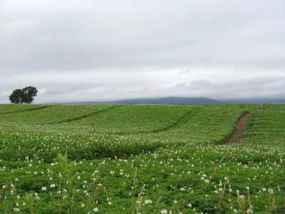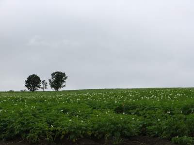 ぐるぐると走り回るだけで楽しいところ。それが美瑛でした。何が楽しさを感じさせてくれたのかというと、日常をまるっきり取っ払ってしまったような風景としか言いようがありません。遮るものがないくらい続く麦畑や蕎麦畑、ジャガイモ畑。その中にいろんな風情を漂わせる木がぽつんぽつんと。そうするとその木がなにかこう頭の中で擬人化されてくる。孤高の人に見えてくる。しかも、その木が漂わせる気配はそれぞれに違います。クリスマスツリーの木なんかはまだ若々しくて、これからいろいろしんどいことがあるよっていう感じがします。親子の木なんかはとてもほほえましい。でも、そのほほえましさは両親の力強さがあってのこと。ぴんと胸を張ったかに見える両親の木は、世間の荒波から子供を守ろうという強い意志が感じられたり。セブンスターの木は、いろいろな苦節に耐えてきて、酸いも甘いも噛み分けたおじいさんやおばあさんのやわらかく包み込んでくれるような風情が感じられます。まあ、私の頭の中のイメージでしかないんですが・・・。木以外では、単純に風景の美しさとしか言えないかな。作物が違えば色が違う。違う作物を育てている広大な畑が接していればそれこそ「パッチワーク」のような美しさがひろがりますから。