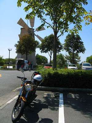 新旭にはなぜか風車村というのがあって、道の駅のように休憩できるようになっています。よっこらしょと、同居人をおろして、いろんな花が咲く園内を散歩。あちこちにオランダの風車を模したものがしつらえてあって不思議な感じの場所です。