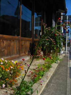 北国街道に沿って醤油やさんや酒屋さん。多くの店の前には、ささやかな花が咲いていて、それが奥ゆかしい情緒を醸し出しています。