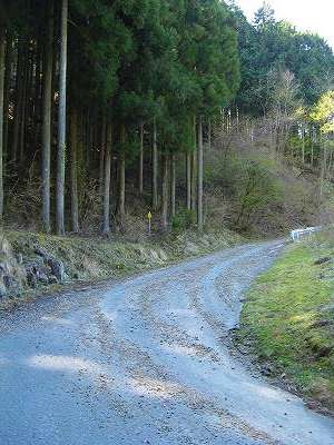 そんな霞の間を軽やかに通りぬけていくうち、またまた峠。分杭峠に差し掛かってきます。もちろん道は細くなって車だとやっとすれ違えるくらい。で、こんなところでなぜか渋滞。実はここ、分杭峠は最近、「ゼロ磁場のパワースポット」として有名らしく、たくさんの人が訪れるようになっているんですよ。しかしちっとも改良されていない峠の頂上にいっぱい車が押しかけるものだから大混雑。現在は峠付近は駐車禁止、ずうっと下の方に車を停めて、予約制のマイクロバスで峠まで来る手はずになっている・・・はずなんですが、おいおいただでさえ狭い道の片側にびっしり駐車している車ども。おかげですれ違いに難渋を極め、なかなか進まんやないのおっ!峠のピークで写真をと思っていたんですが、こりゃそれどころじゃない。粛々と下っていくことにします。粛々だってちょっとかっこつけすぎ(笑)