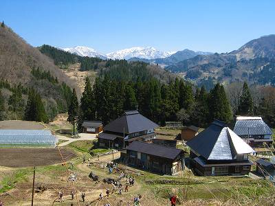 こんな雄大な景色を眺めながら歩くのは実に爽快な気分ですね。ここに登ってみたいと思う人も大勢いるようですが、私にとってはこれが近寄りがたい威厳を放っているんですよ。さきの代掻馬じゃないですが、昔の人は自然からいろんな声を聞きながら、自然に包まれて生活していた。でも、そういった声が聞こえなくなって久しい現代人、私は、なるべく声を聞きたいとは思っていますが、いかんせん訓練されていない。だから、このすばらしい風景から具体的な声を聞くことができません。それが近寄りがたさを感じさせるんでしょう。だからむやみに近づくのはよして、遠くから眺めて感心するばかり。でもそれでもいいんです。美しい山に囲まれて楽しい話をしながら歩くだけで充分。購買意欲をむりやり刺激する毒々しい広告もなければ、ちょっと肩が触れただけで目がつり上がってしまうようなぎすぎすした通勤もここにはありません。