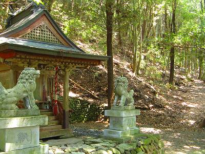 さて、出発してからずっと深い山の中です。そろそろ中辺路町でしょうか。国道に沿って、あちこちに〜王子の看板。王子とは熊野古道に沿って作られた神社。大阪からずっと参詣道ぞいに建てられています。国道なので、少し山の方へ入ると、ところどころ昔の道を歩くことができます。今回は、ある王子へ立ち寄ってみました。国道から少し脇へそれると今度は旧国道、そこからまた奥に入ると、車がやっと通れるような古い道が現れます。