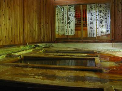到着してみると部屋は障子の張替え中、しかもご主人がいないとかで、まあまあ先に風呂に入って入って、と勧められます。ここの風呂は割と有名らしく、インターネット上にたくさん写真が出ています。少し硫黄の匂いがして塩辛く、金気のするやわらかい湯が、コンクリートの浴槽三つを満たしています。特筆すべきは三つ並んだ湯船の奥、浴室の突き当たりがいきなり神社になっているんです。そういえば、浴室の案内に「湯殿→」と書いてあったのを見て、昨年参拝した、湯殿山を思い出したんでした。あそこでも湯が大地の力を直接我々に移してくれるように感じたのですが、ここも同様です。昔の信仰の形を今に伝えている、珍しい例ではないでしょうか。温泉だけではなく、あらゆるものに神が宿るという信仰の形。そんな神の贈りものである温泉につかって体を癒すという湯治は、ごく当たり前のなりゆきだったのでしょう。生きていようがいまいが、すべてのものとつながりあって暮らしていたという生活から、日本の信仰心は生まれてきたのではないかと思います。うま家の近所には、医学実験に使われた動物の供養塔がありますし、針供養など生きていないものに対しても供養をするというのは、もと仏教から来たことかもしれないですが、つながりあうことに対する感謝が、深く日本の信仰心の中に入り込んでいるからだと思われます。理屈はさておいて、すでに素っ裸になっているので珍妙な感じは否めませんでしたが、生まれてきたままの姿でぱんぱんと手を打ってお参りさせていただきます。